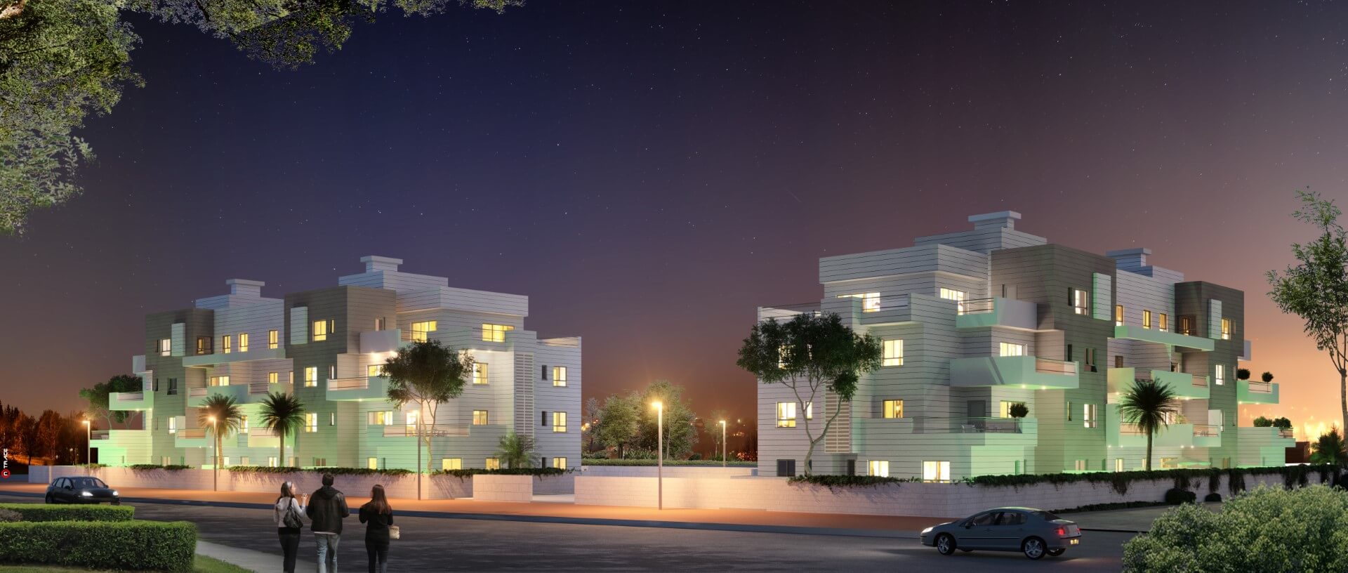 בתכנון המתחם שמנו דגש על יצירת חווית מגורים אינטימית ופרטית ועל כן מספר הדירות בבניינים הוא מצומצם.